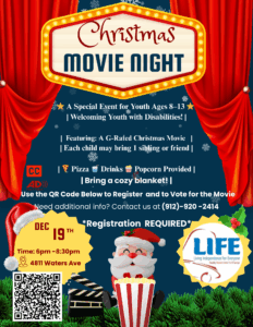 LIFE, Inc. is hosting a Youth Holiday Movie Night exclusively for youth with disabilities ages 8-13